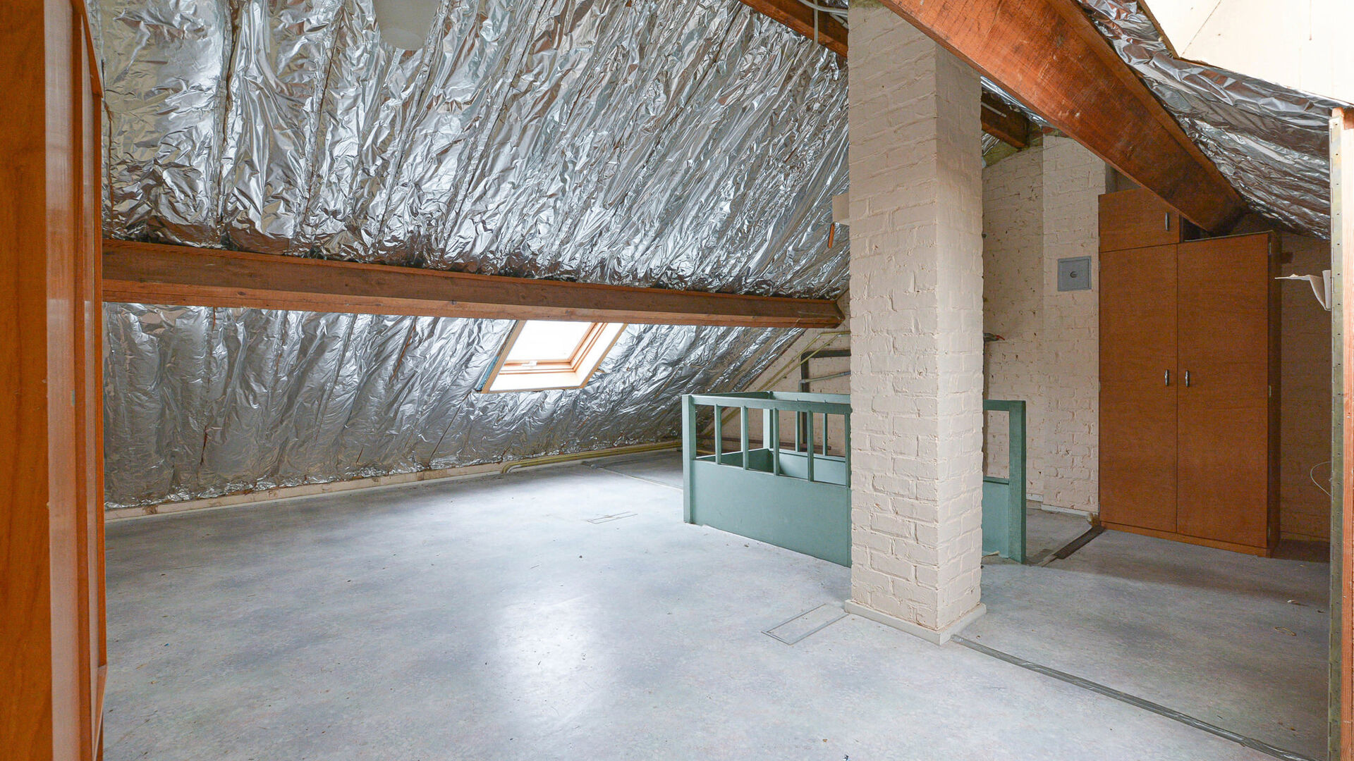 Zolder: Ruime zolder van +/-35 m² die ingericht kan worden in een polyvalente ruimte.