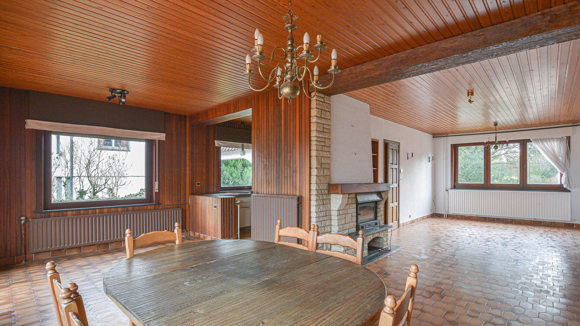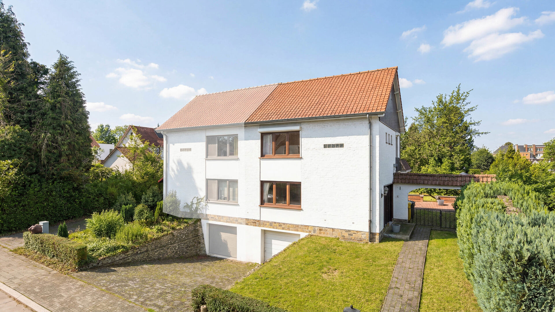 Gelijkvloers: Inkomhal met gastentoilet, ruime en lichtrijke leefruimte van ± 46 m² met open haard, gezellige eetkamer met open keuken van ± 7 m². De leefruimtes geven toegang tot een groot terras van ± 50 m², met een open uitzicht op de tuin. Eerste verdieping: Nachthal die toegang biedt tot drie slaapkamers en een badkamer met toilet. Inrichtbare zolder: Ongeveer 25 m², met interessante uitbreidingsmogelijkheden. Kelderverdieping: Meerdere kelders, stookruimte en een grote garage voor maximaal drie wagens, met garagedeur en met rechtstreekse toegang tot de tuin. Troeven: Rustige residentiële wijk, mooie volumes en uitstekende lichtinval, prachtige tuin, garage voor 3 wagens, groot potentieel voor inrichting en uitbreiding