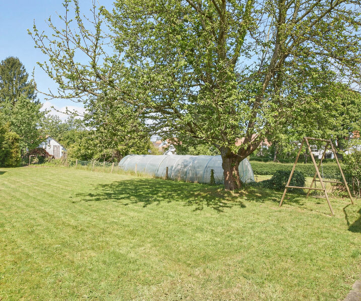 Gelijkvloers: Inkomhal met gastentoilet, ruime en lichtrijke leefruimte van ± 46 m² met open haard, gezellige eetkamer met open keuken van ± 7 m². De leefruimtes geven toegang tot een groot terras van ± 50 m², met een open uitzicht op de tuin. Eerste verdieping: Nachthal die toegang biedt tot drie slaapkamers en een badkamer met toilet. Inrichtbare zolder: Ongeveer 25 m², met interessante uitbreidingsmogelijkheden. Kelderverdieping: Meerdere kelders, stookruimte en een grote garage voor maximaal drie wagens, met garagedeur en rechtstreekse toegang tot de tuin. Troeven: Rustige residentiële wijk, mooie volumes en uitstekende lichtinval, prachtige tuin, garage voor 3 wagens, groot potentieel voor inrichting en uitbreiding
