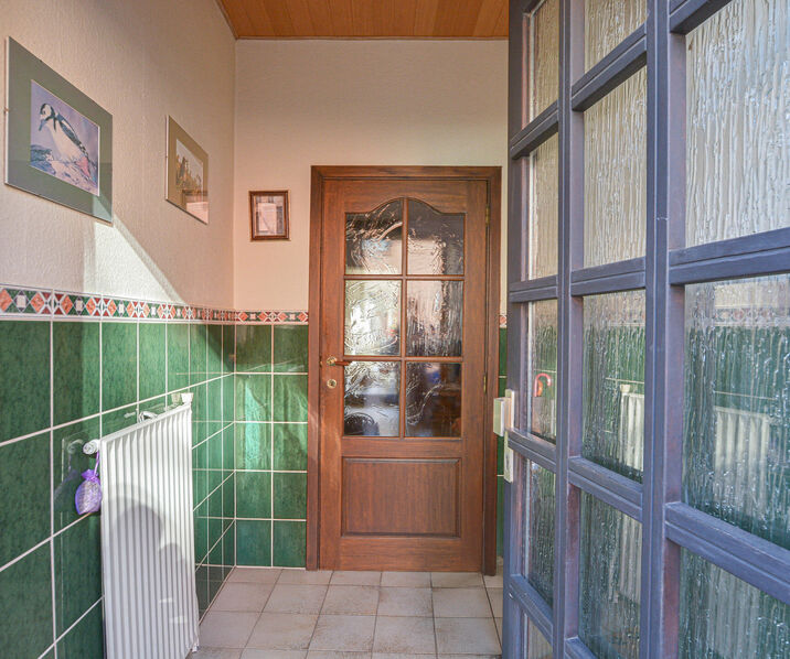 Deze woning van +/- 179 m² (volgens EPC) biedt mooie volumes en een groot potentieel en is als volgt ingedeeld: