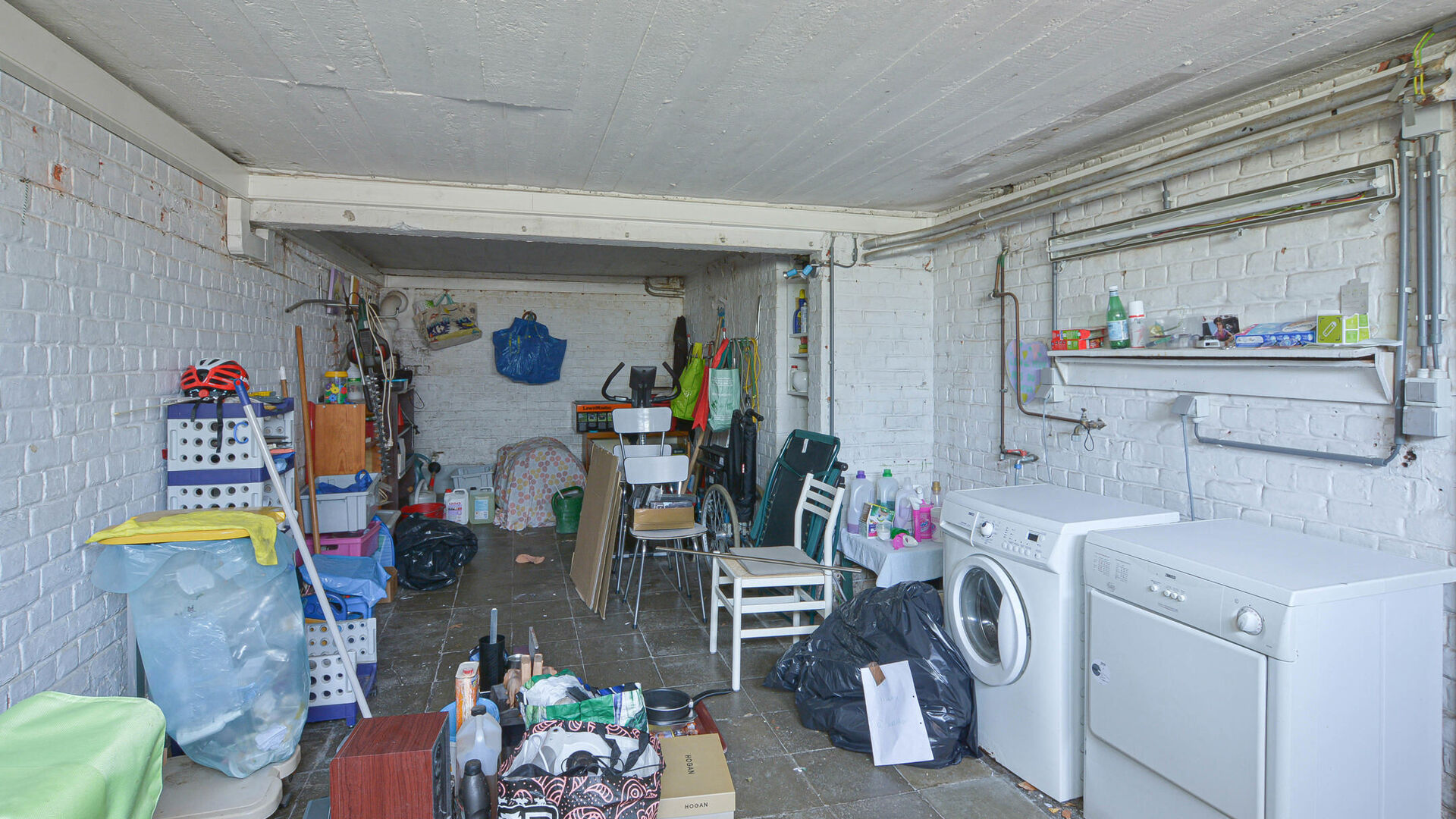 In de kelderverdieping vindt u opbergruimtes, een technische ruimte met douche, een wasplaats en een garage voor één wagen + staanplaats op de oprit.
