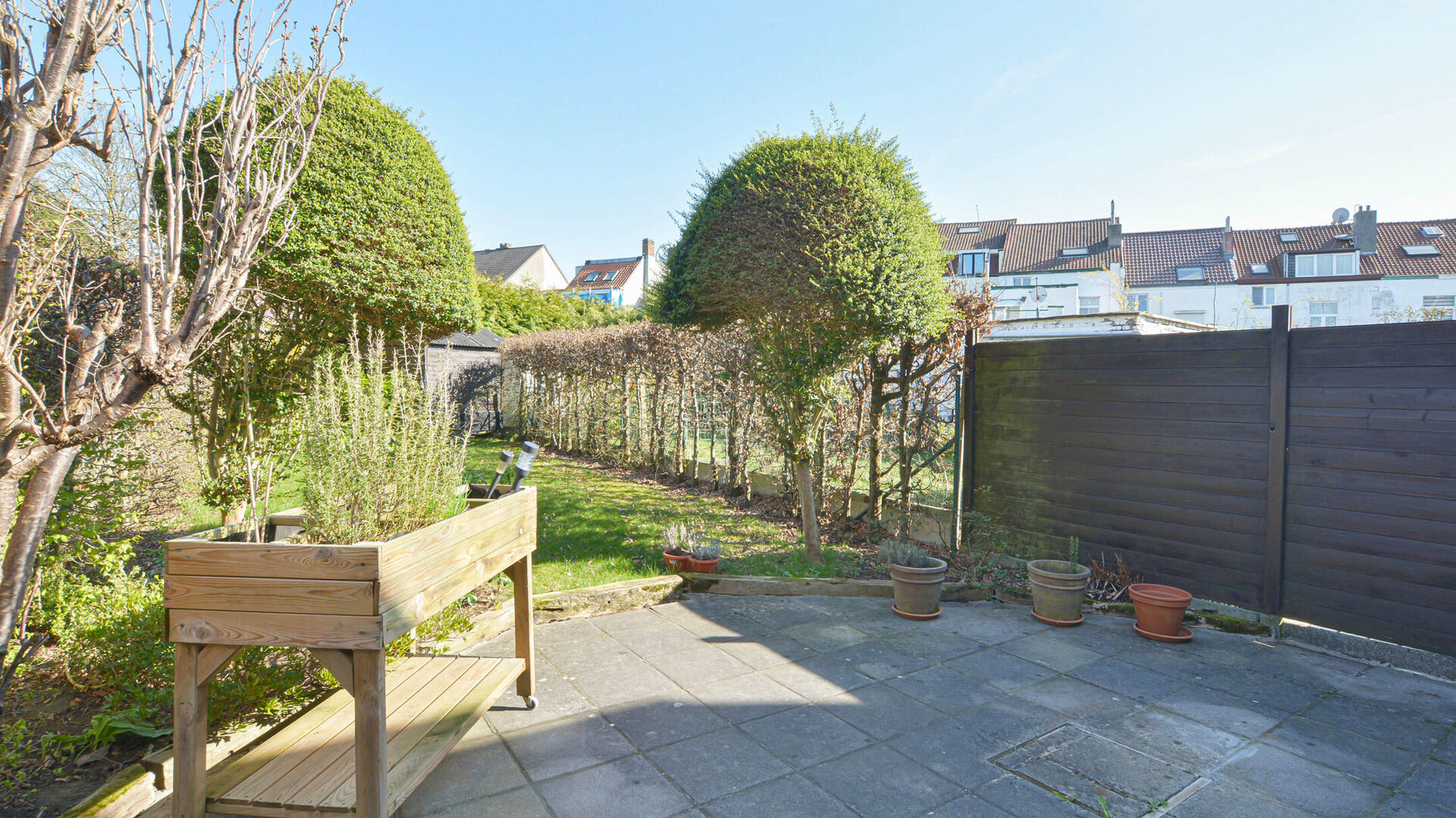 - Gelijkvloers: Inkomhal met apart toilet, lichtrijke woon- en eetkamer van +/-30 m², uitgeruste keuken met directe toegang tot een aangenaam privatief terras en een aansluitende tuin met tuinhuis.