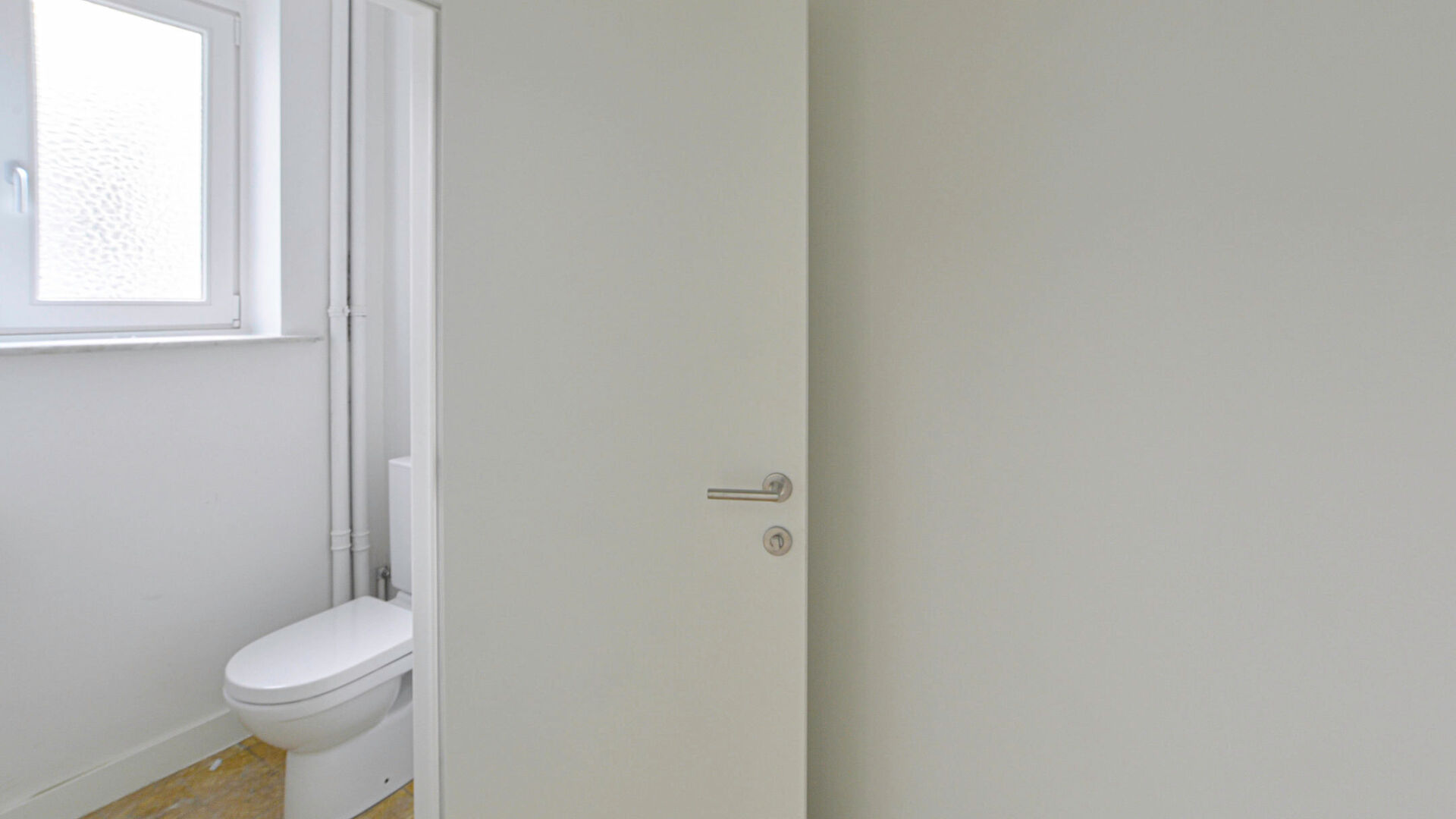 Het pand omvat eveneens een privatieve ruimte van ongeveer 12 m² met een apart toilet, ideaal als bureau of extra opslagruimte. Een garage met automatische poort is inbegrepen in de huur, een echte troef in de buurt.