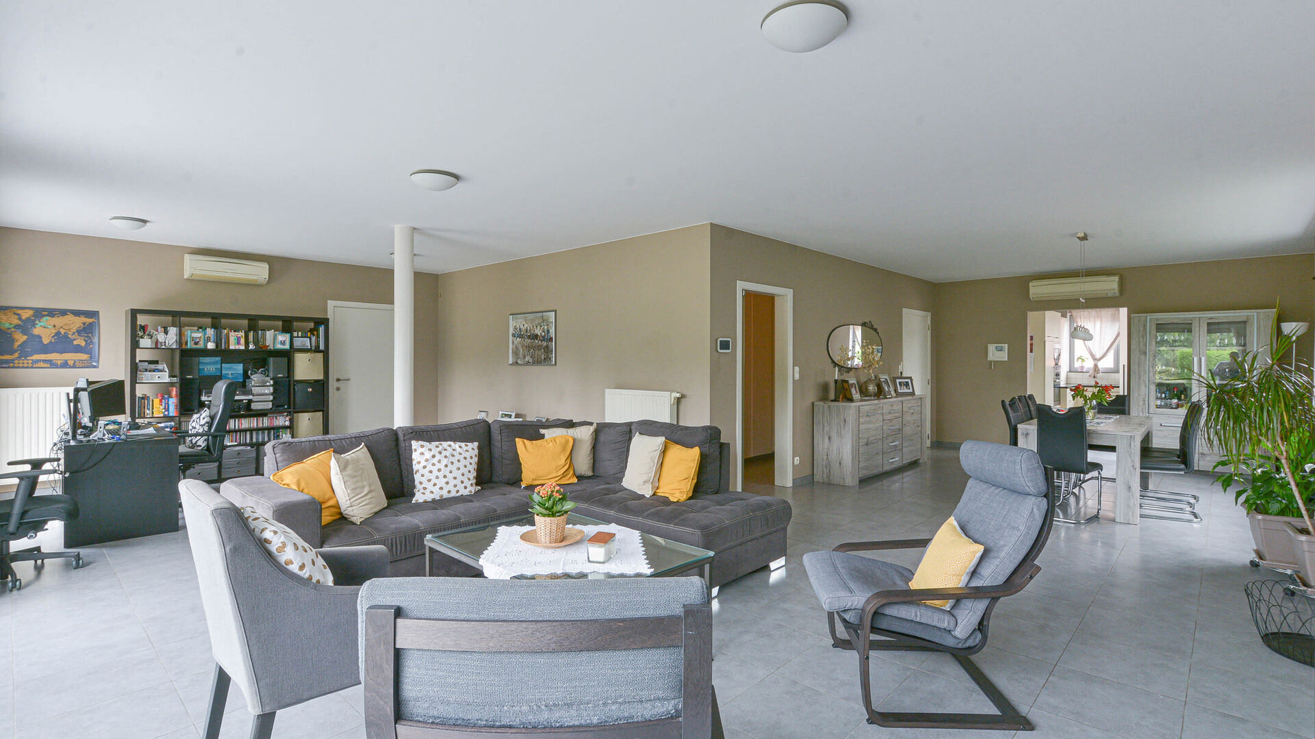 - Ruime en lichtrijke woon- en eetkamer van +/- 65 m², met toegang tot een zuid gerichte tuin en terras met uitzicht op de omliggende velden