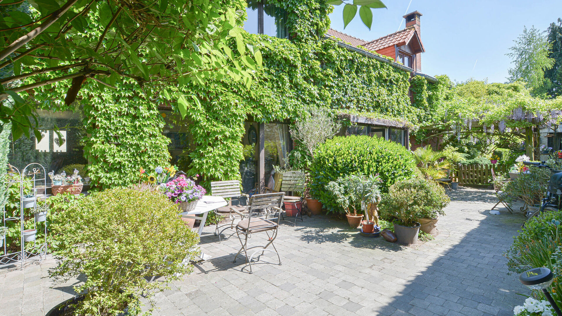 Daarnaast beschikt de woning over een prachtige privatieve tuin zonder inkijk, een binnenkoer/terras, een ruime opslagschuur en garage.